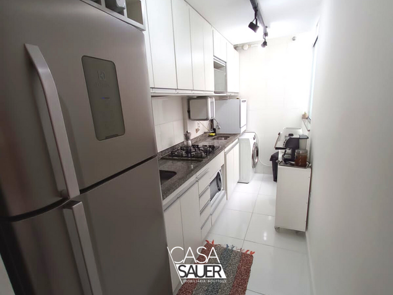 A cozinha possui cooktop, duas pias e marcenaria em fechamento suave, tornando o ambiente ainda mais agradável e moderno. As janelas possuem telas de proteção infantil e pet, o que é ideal para quem tem crianças ou animais de proteção em casa.