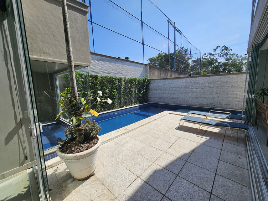 No andar inferior, a casa se desdobra em uma elegante sala de estar e jantar, além de um lavabo. A área gourmet é um convite ao entretenimento, com sauna integrada, cozinha completa, forno de pizza e churrasqueira, ideal para reuniões familiares e com amigos. A piscina aquecida e a sauna a vapor garantem momentos de relaxamento e diversão.